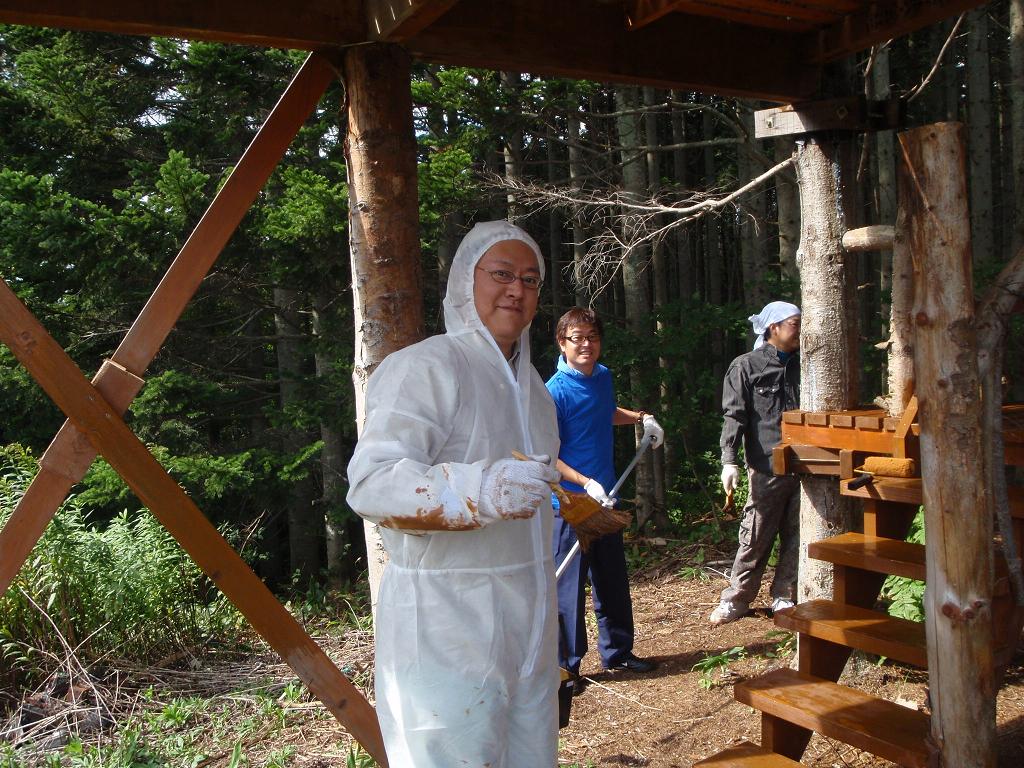 N氏曰く、「頭使わなくていいヤツ、ツリーハウスにペンキ塗れ!」
